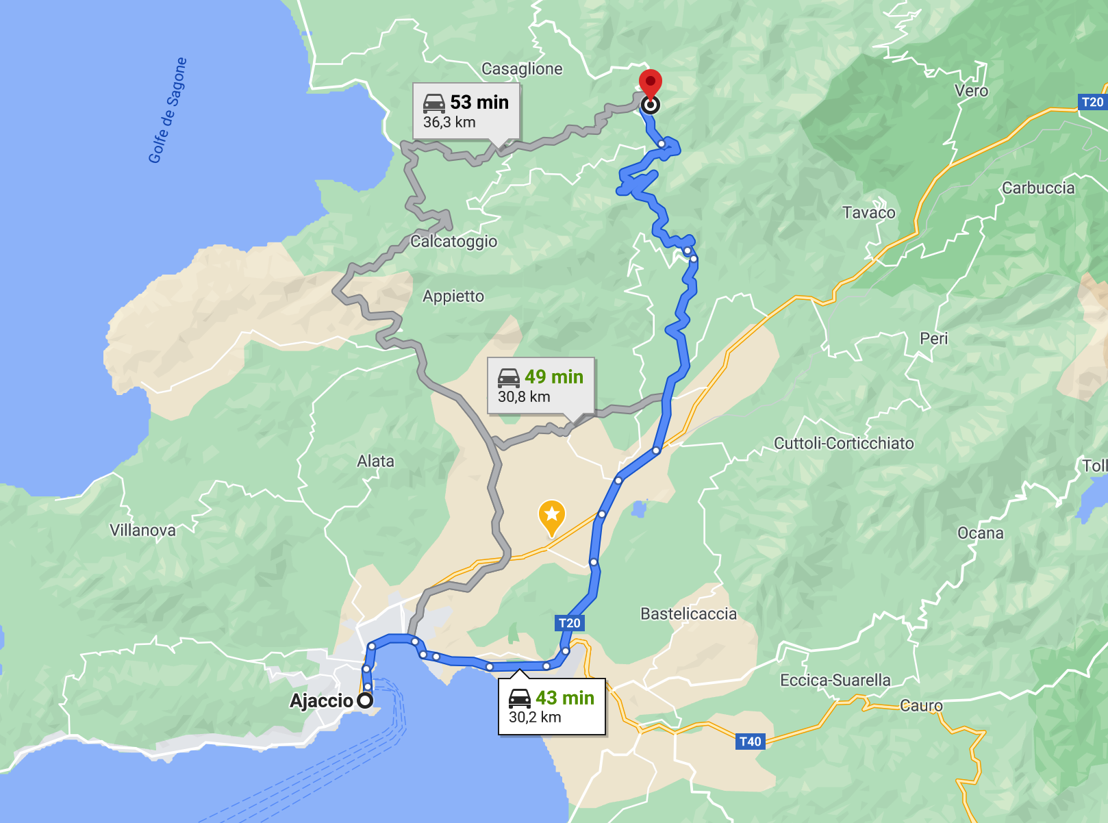 Notre domaine se situe à 45 minutes en voiture d’Ajaccio.